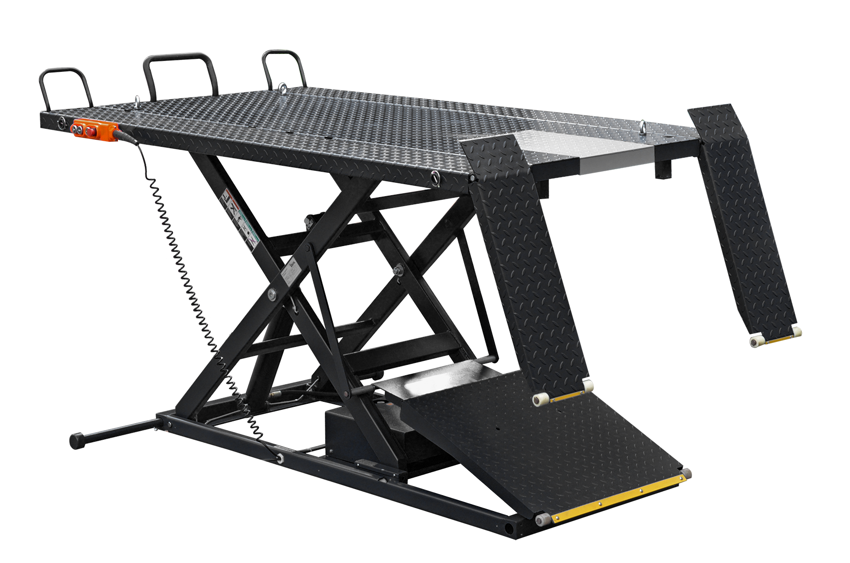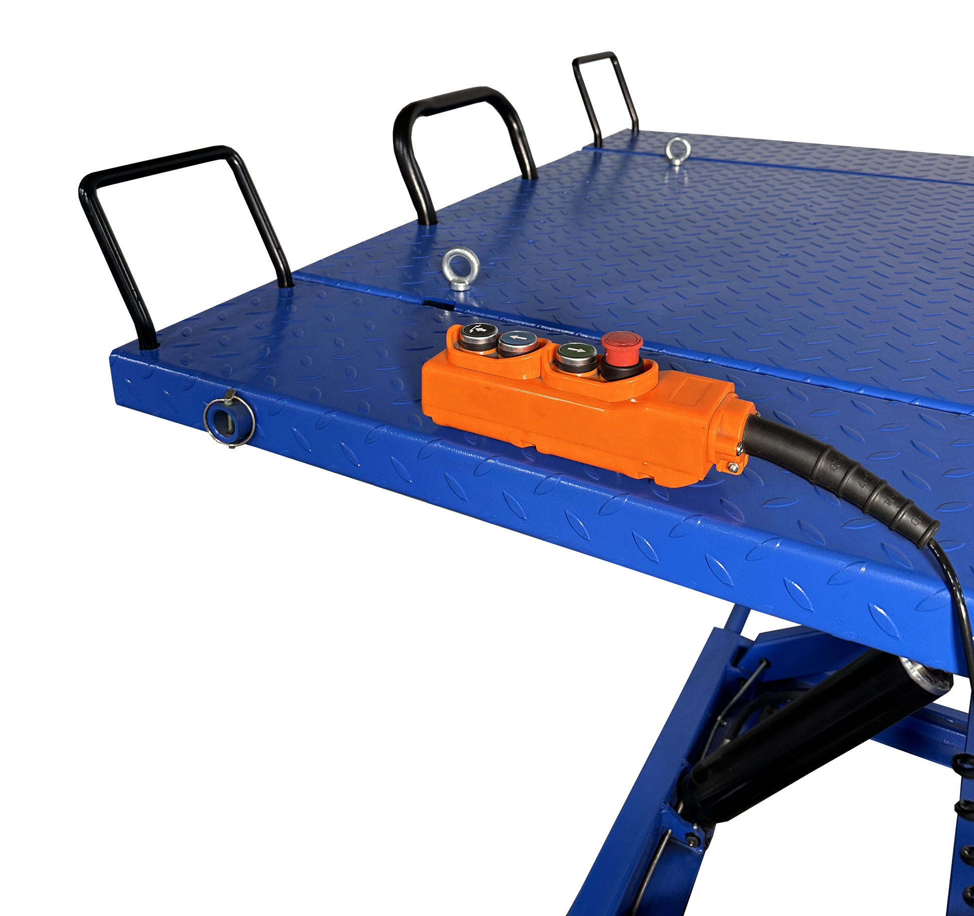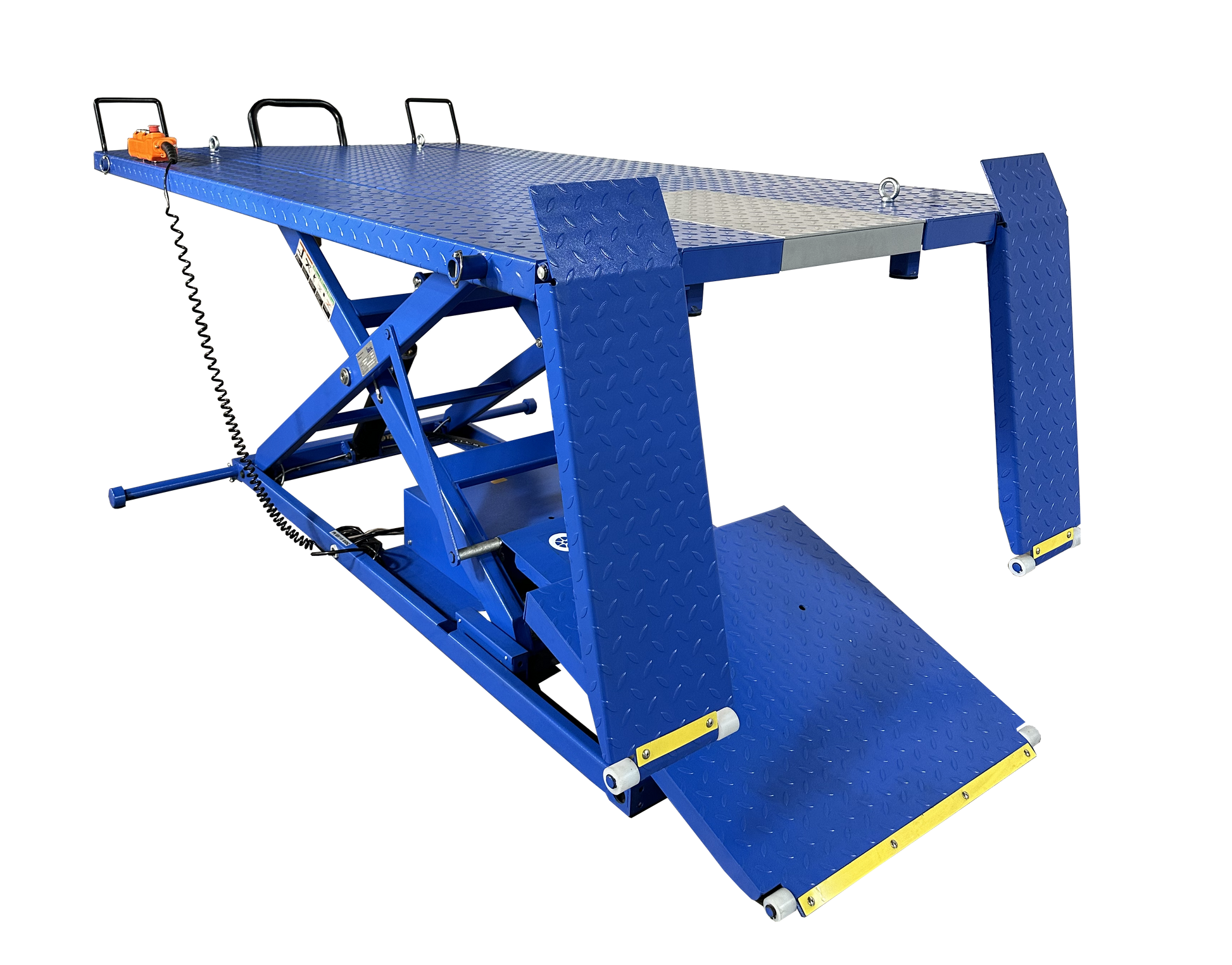 Powered by a 110V electric/hydraulic system and operated via a convenient hand-held control pendant, the A-2200IEH-XR ensures smooth lifting and lowering with minimal effort. The full-width retractable ramp system makes loading and unloading easy, while the rear drop-down service panel offers fast access for tire and drivetrain work. Safety and convenience are built-in with six locking positions, a stabilizer bar for added balance, and tie-down anchor eye bolts to keep your vehicle secure. Available in blue or black powder-coated finishes, this lift is a powerhouse addition to any professional garage or enthusiast’s workshop.