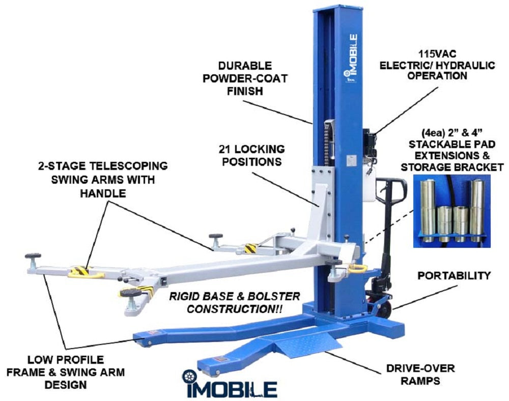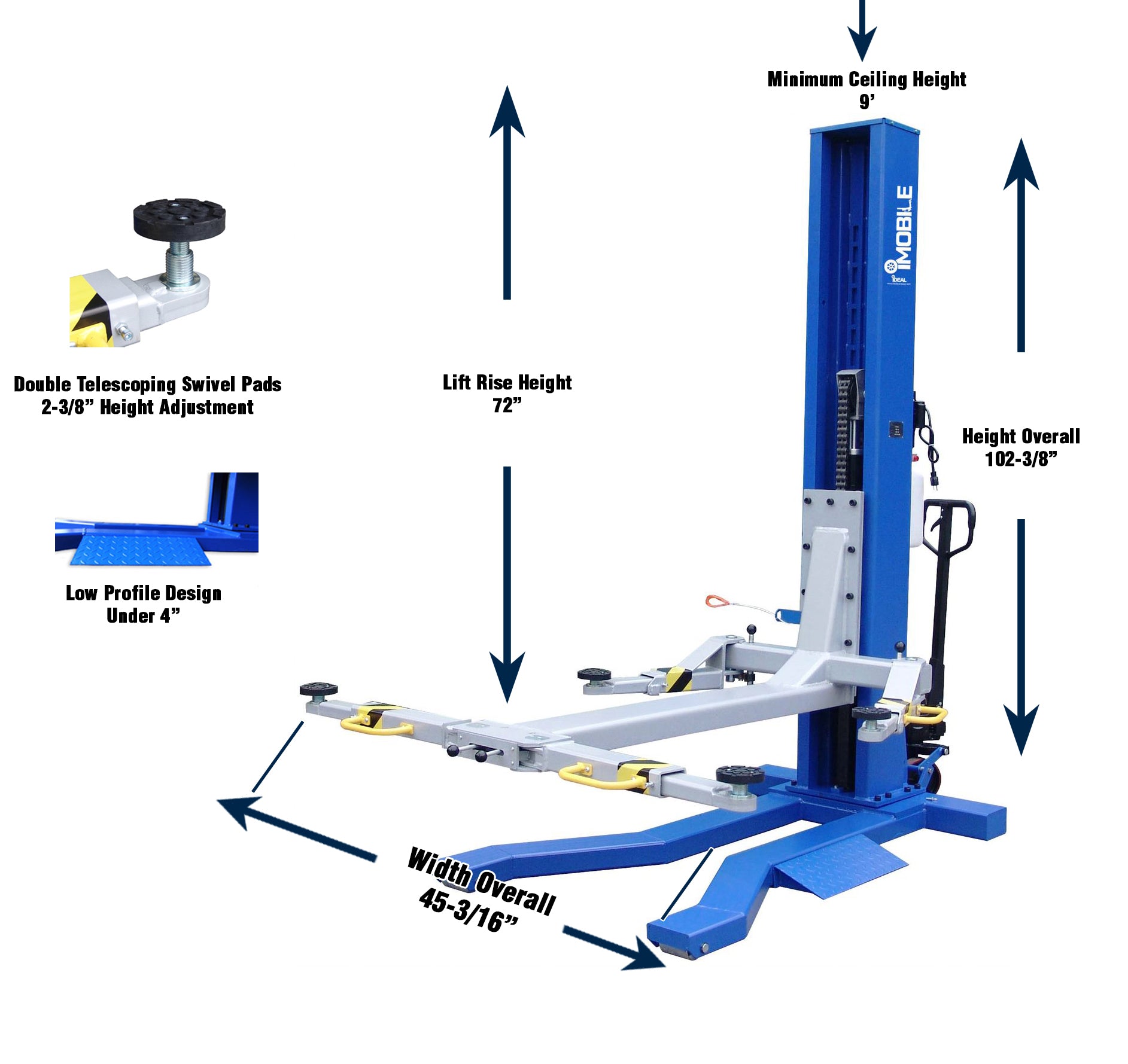 The iDEAL MSC-6KLP 6,000 lb Mobile Column Portable Lift delivers high-capacity lifting power in a space-saving, low-profile design. Built for versatility, mobility, and efficiency, this lift is perfect for shops or home garages where space is limited but performance is essential. The MSC-6KLP offers a 6,000 lb lifting capacity and stands under 4 inches when fully lowered—ideal for vehicles with low clearance. Its portable design and integrated drive-over ramps make setup and repositioning quick and convenient.