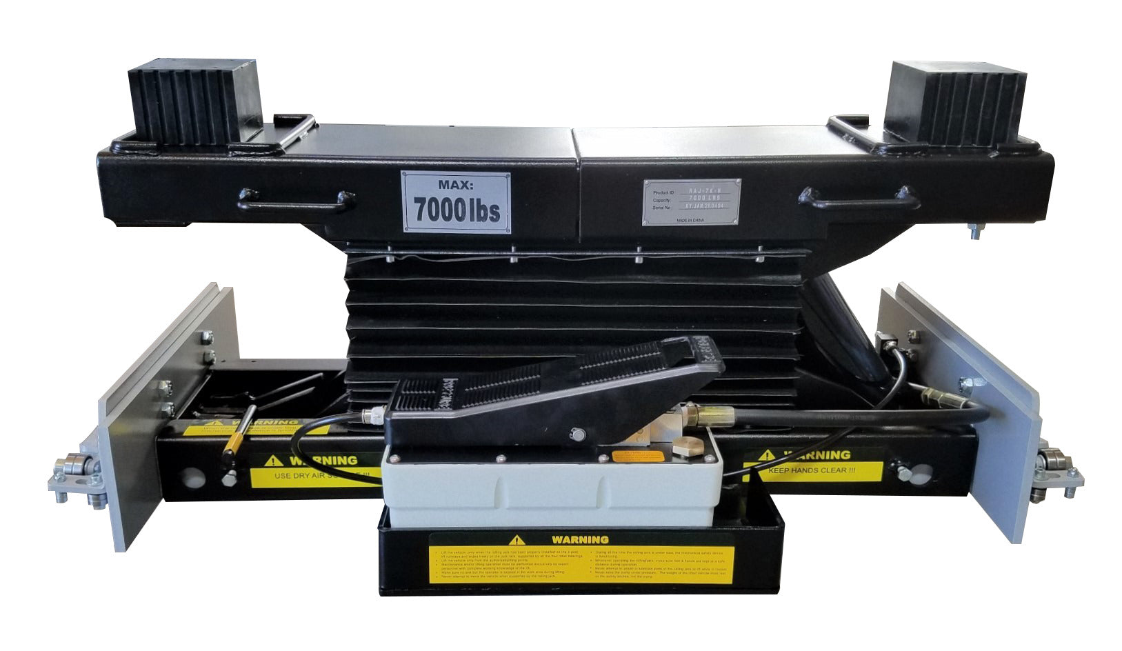 The iDEAL RAJ-7K-H Rolling Air Jack delivers reliable lifting power, professional-grade performance, and smooth on-rail mobility for any automotive shop. Designed with a high-mount configuration for low-position jack rails, this jack provides an impressive 7,000 lb lifting capacity, making it ideal for lifting most passenger cars, SUVs, and trucks. With a compact yet durable frame, the RAJ-7K-H ensures stability and precision while maintaining easy maneuverability across lift rails.