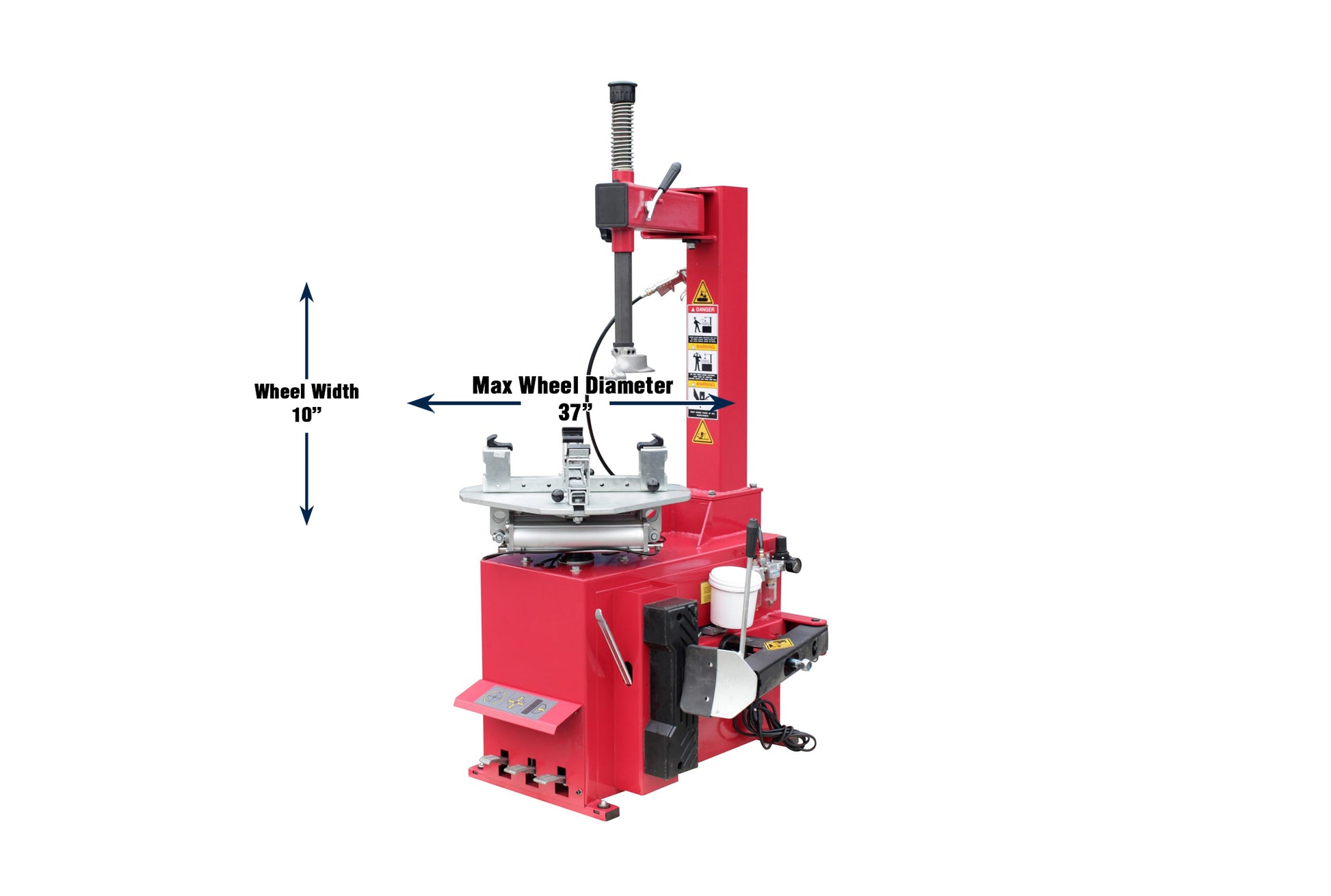 • Designed specifically for motorcycle tire and wheel service • Adjustable clamp set accommodates various wheel sizes • Pneumatic clamps and double-acting cylinders for fast operation • Side-mounted bead breaker for precise and efficient tire removal • Includes water separator, lubricator, and air pressure regulator • Compact footprint ideal for small and large shops alike • Rugged steel construction ensures long-lasting durability • Operates on standard 110V power – no special wiring needed • Backed by Tuxedo’s one-year warranty on all parts |